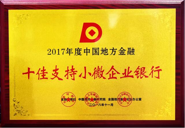11月10日,由金融时报、全国地方金融论坛办公室、中国地方金融研究院联合主办的全国地方金融二十二次论坛年会在海南海口召开,十一届全国政协副主席陈宗兴、中国银行业协会副秘书长周更强、海南省人民政府副省长沈丹阳等领导专家出席论坛。年会以“高质量、促发展-新时代地方金融为地方经济发展再立新功”为主题,对全国各地方金融机构支持服务实体经济成效进行综合评价。经过专家学者的公证客观评判,自贡银行脱颖而出,被评选为“中国地方金融(2017)十佳支持小微企业银行”。